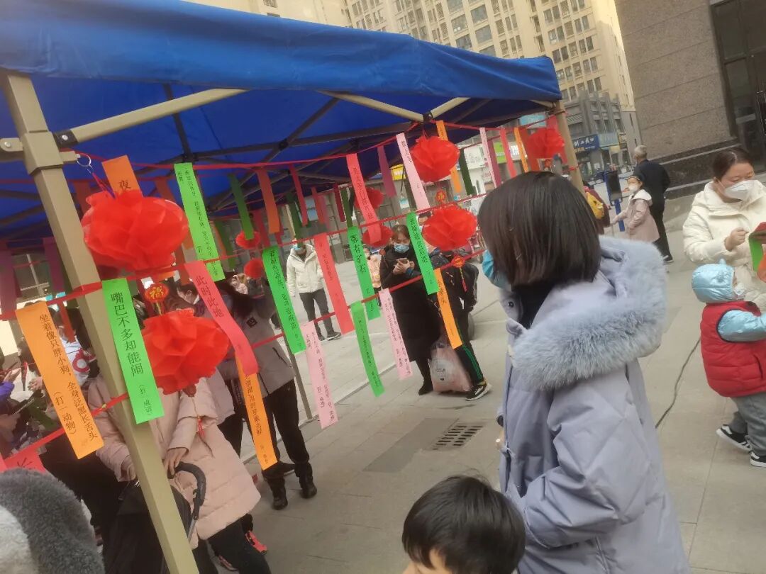 喜慶的音樂、豐富的禮品、琳瑯滿目的花燈下掛著的字謎飄動著,吸引了眾多業(yè)主前來參加,大家全神貫注地研究著謎面,或冥思苦想,或集思廣益……