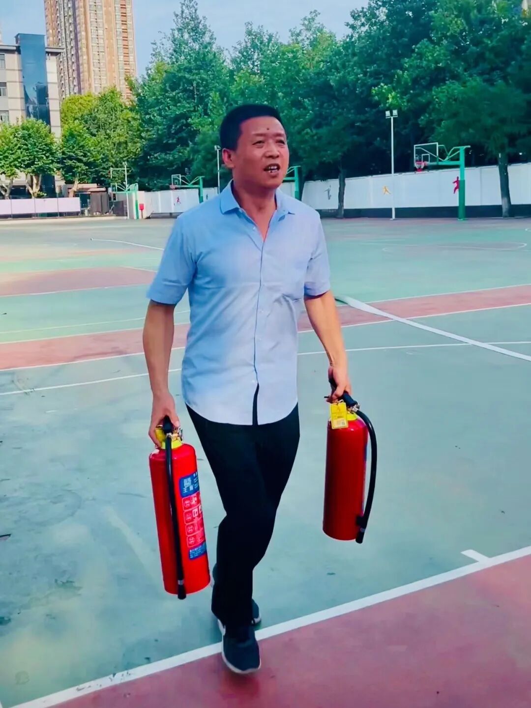 演練現(xiàn)場進行滅火器等使用演練,有效提高了員工滅火、疏散、自救能力和管理者火場組織能力、協(xié)調(diào)指揮能力以及安全疏散能力,力爭人人都是“消防員”。同時邀請校方管理人員觀摩并得到了相關(guān)領(lǐng)導(dǎo)的表揚和肯定。